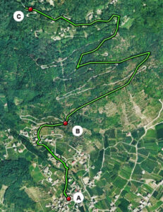 Fino al 1977, anno in cui fu realizzata la strada carrabile di Piazzeda, la frazione era raggiungibile solo con una vecchia mulattiera erta e sconnessa, la Strada vegia, che si inerpica nelle vigne tra i Mur Bianc e poi si addentra nel bosco, offrendo la possibilità di immergersi totalmente nella natura.
