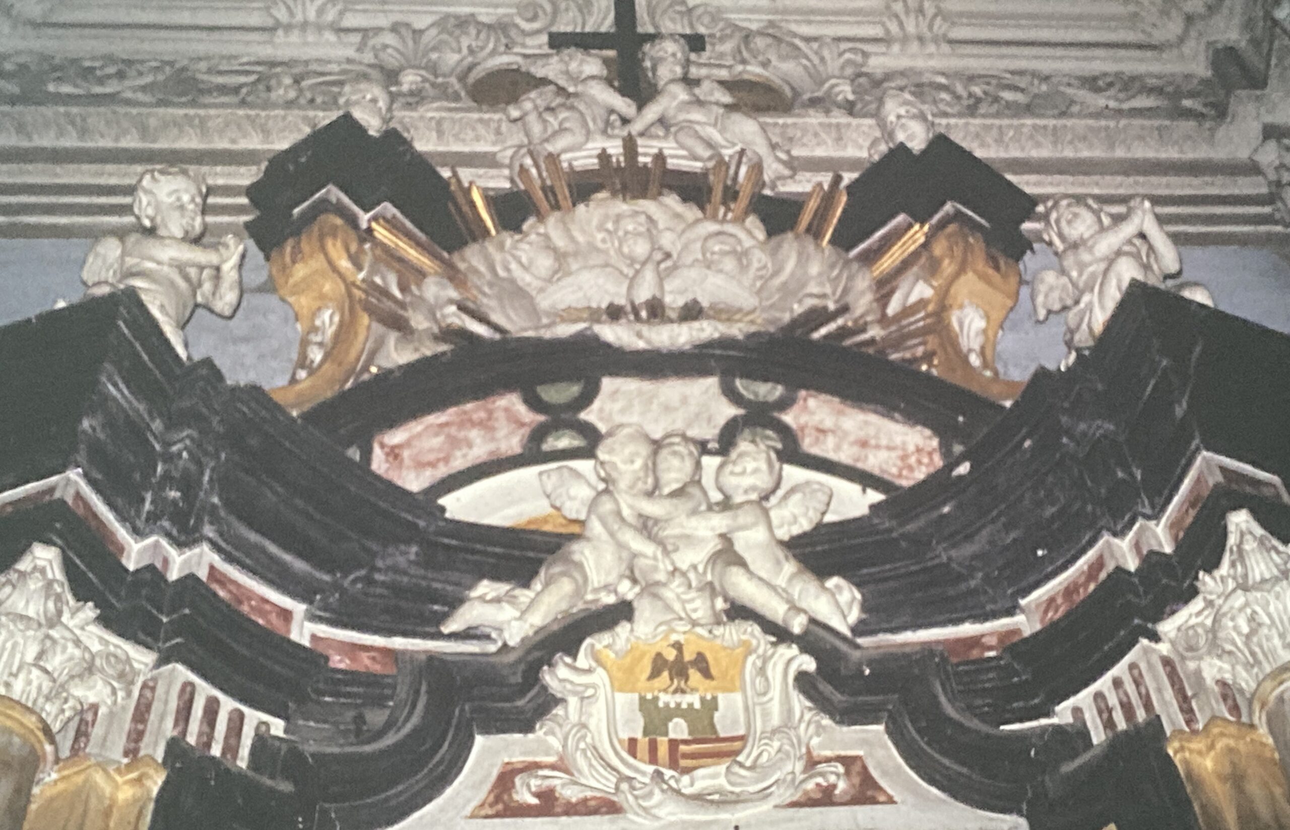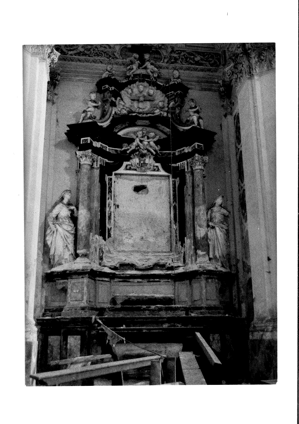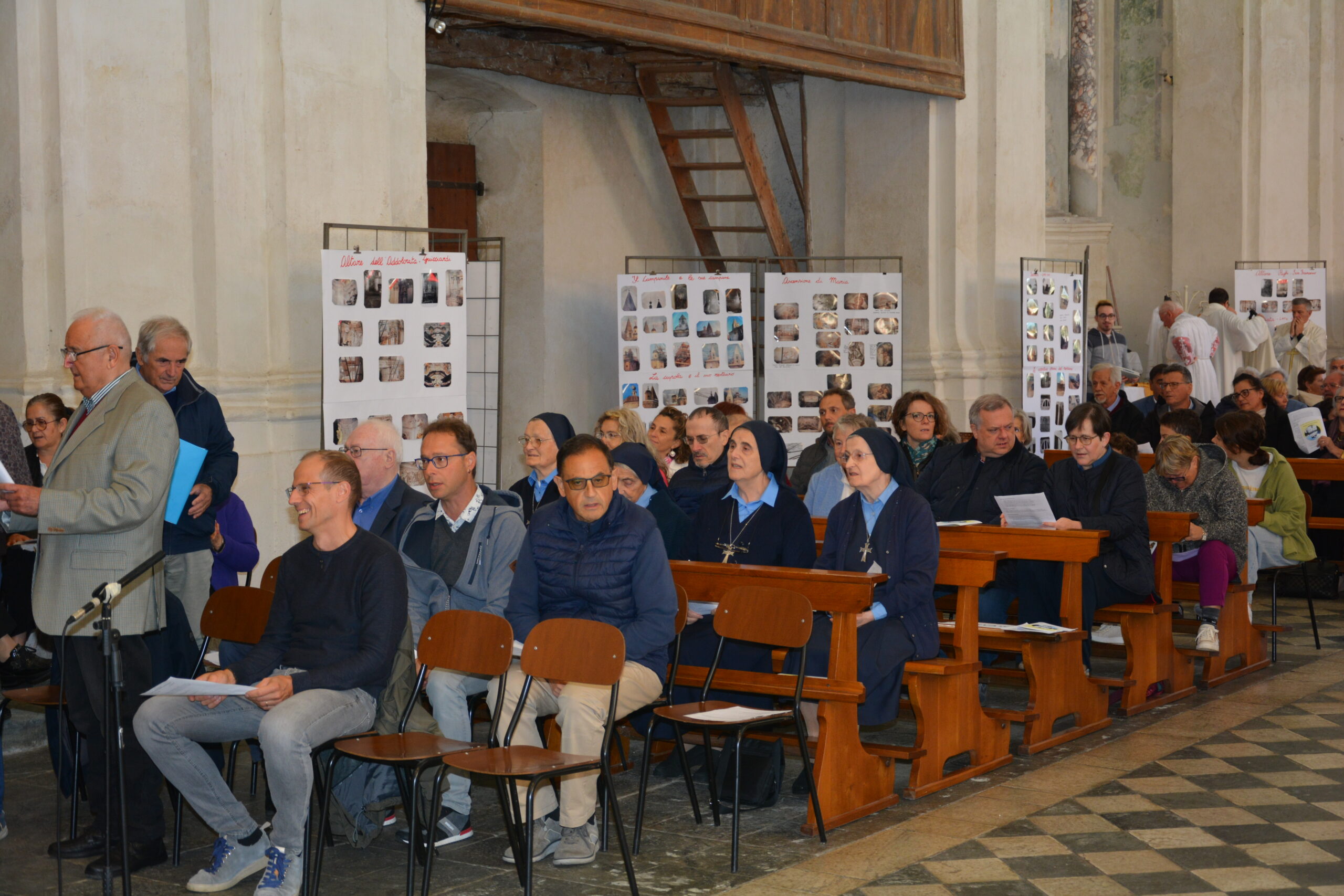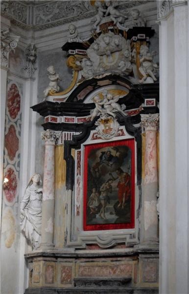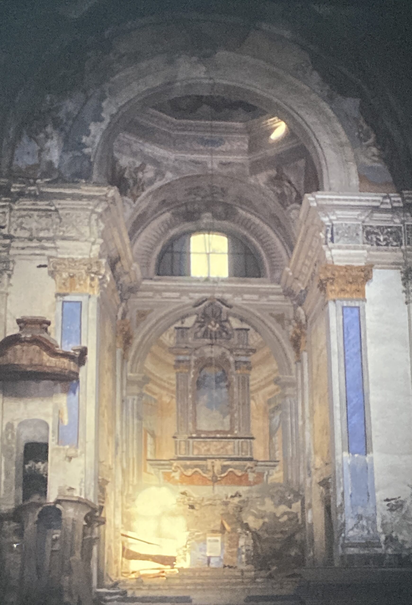 L’interno della chiesa è caratterizzato da un’ampia e luminosa navata unica con sei cappelle laterali, ricavate nello spessore dei muri e comunicanti tra loro. Nella cappella centrale di destra si trova una modesta cantoria e i resti di un organo settecentesco. Nelle altre cappelle ci sono quattro altari in gesso scagliola, tutti della seconda metà del Settecento. Il primo altare a destra è dedicato a San Francesco, mentre il successivo, dedicato alla Madonna Addolorata, conserva un’interessante predella in pietra lavorata e lo stemma della nobile famiglia Guicciardi. Sopra l’altare maggiore, gli affreschi della cupola raffigurano l’Assunzione della Vergine, con gli Apostoli in basso.