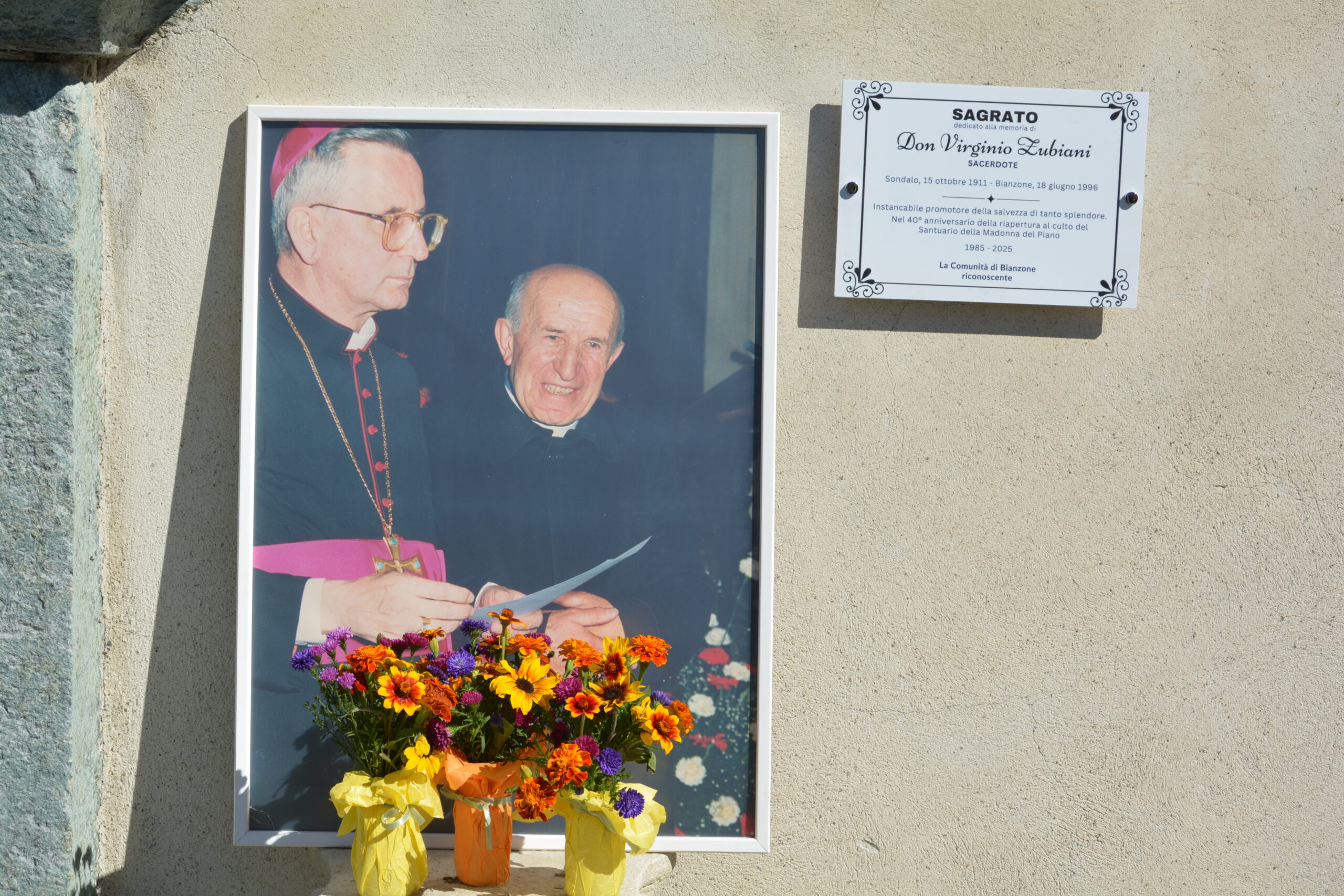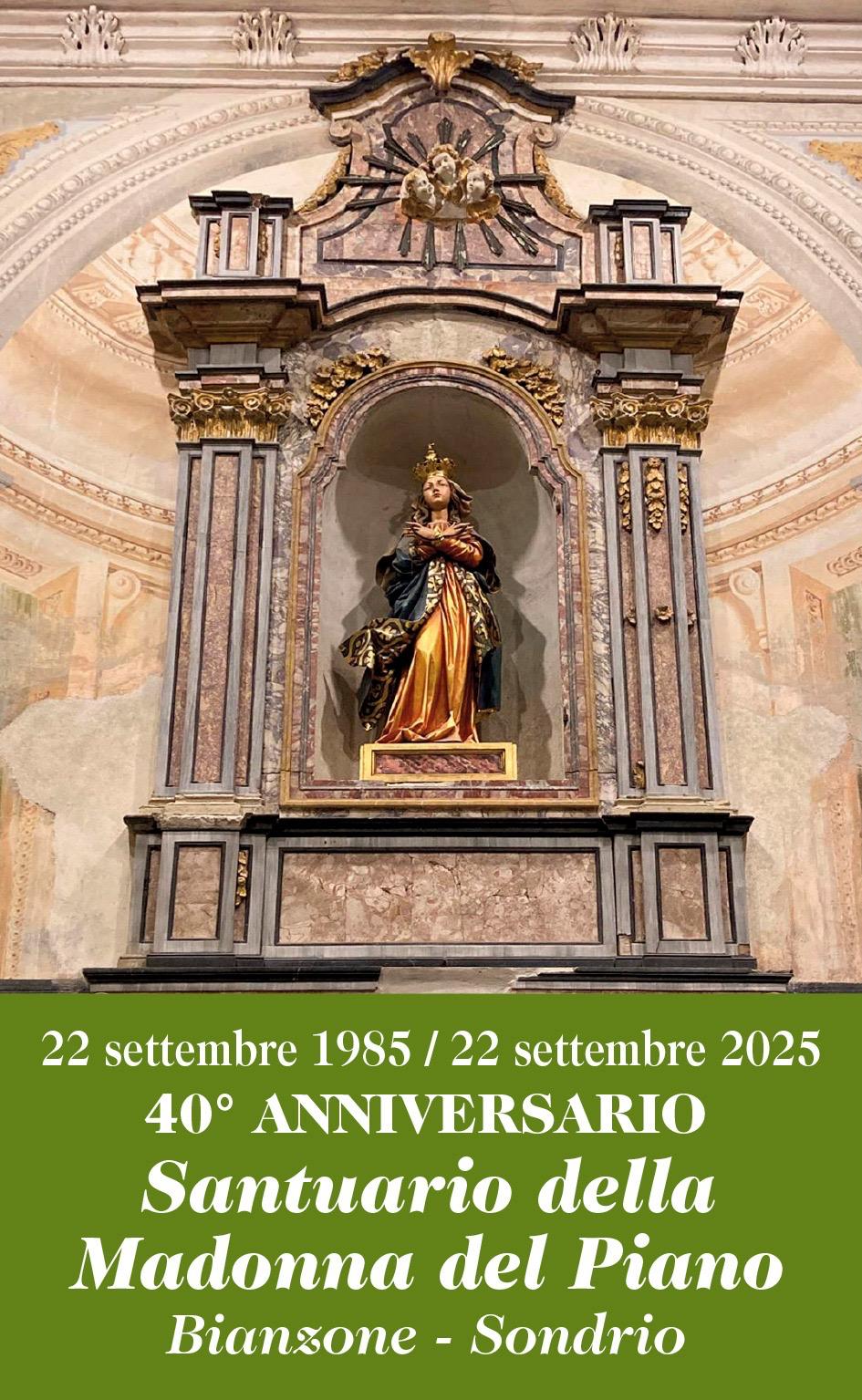 Il Santuario della Madonna del Piano a Bianzone è un tempio storico che racchiude epoche e stili diversi, la cui origine si lega a una tradizione di apparizione mariana documentata in un manoscritto del 1911. La parte più antica della struttura è il campanile romanico e una porzione di muro nella “vecchia sagrestia”.