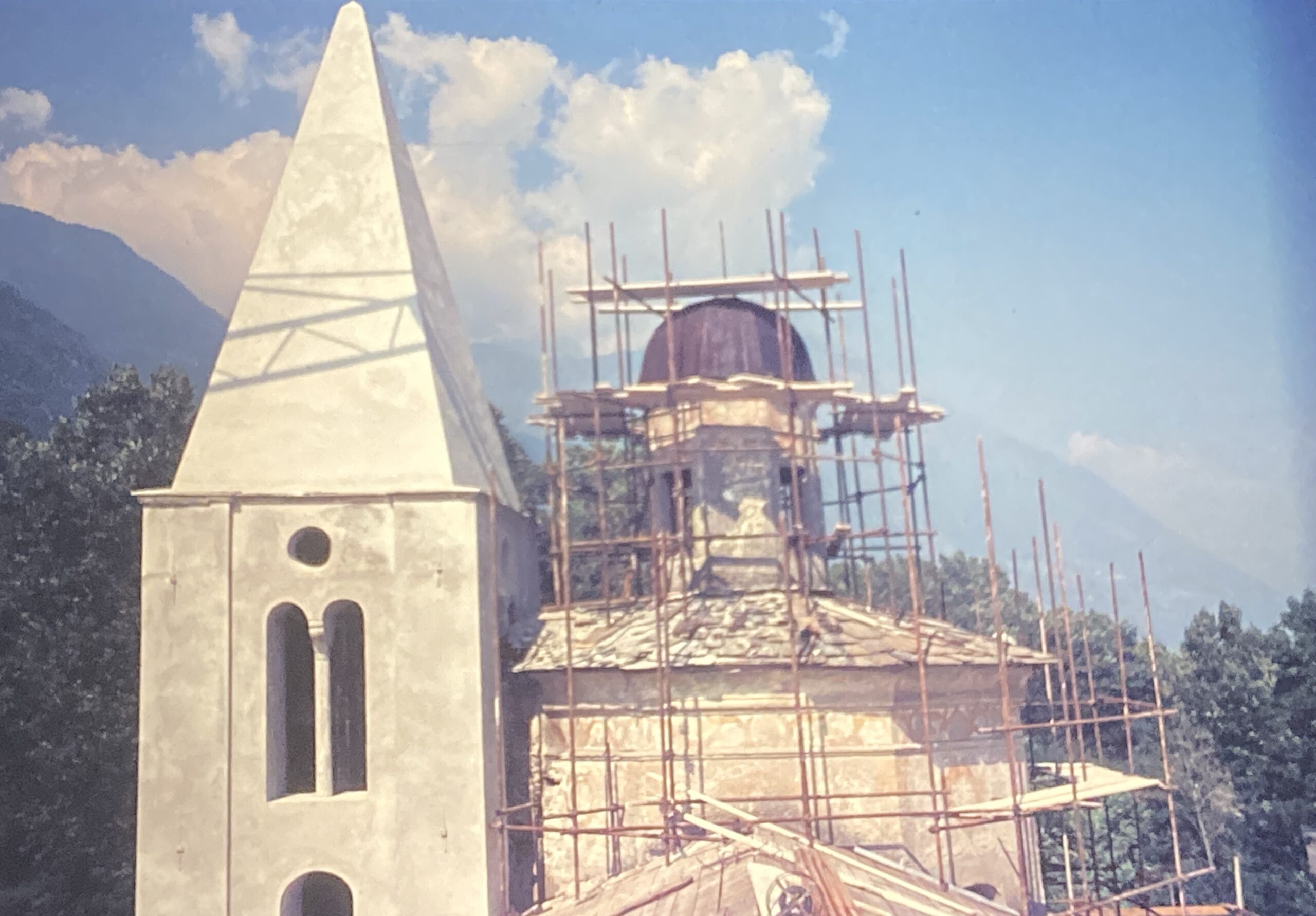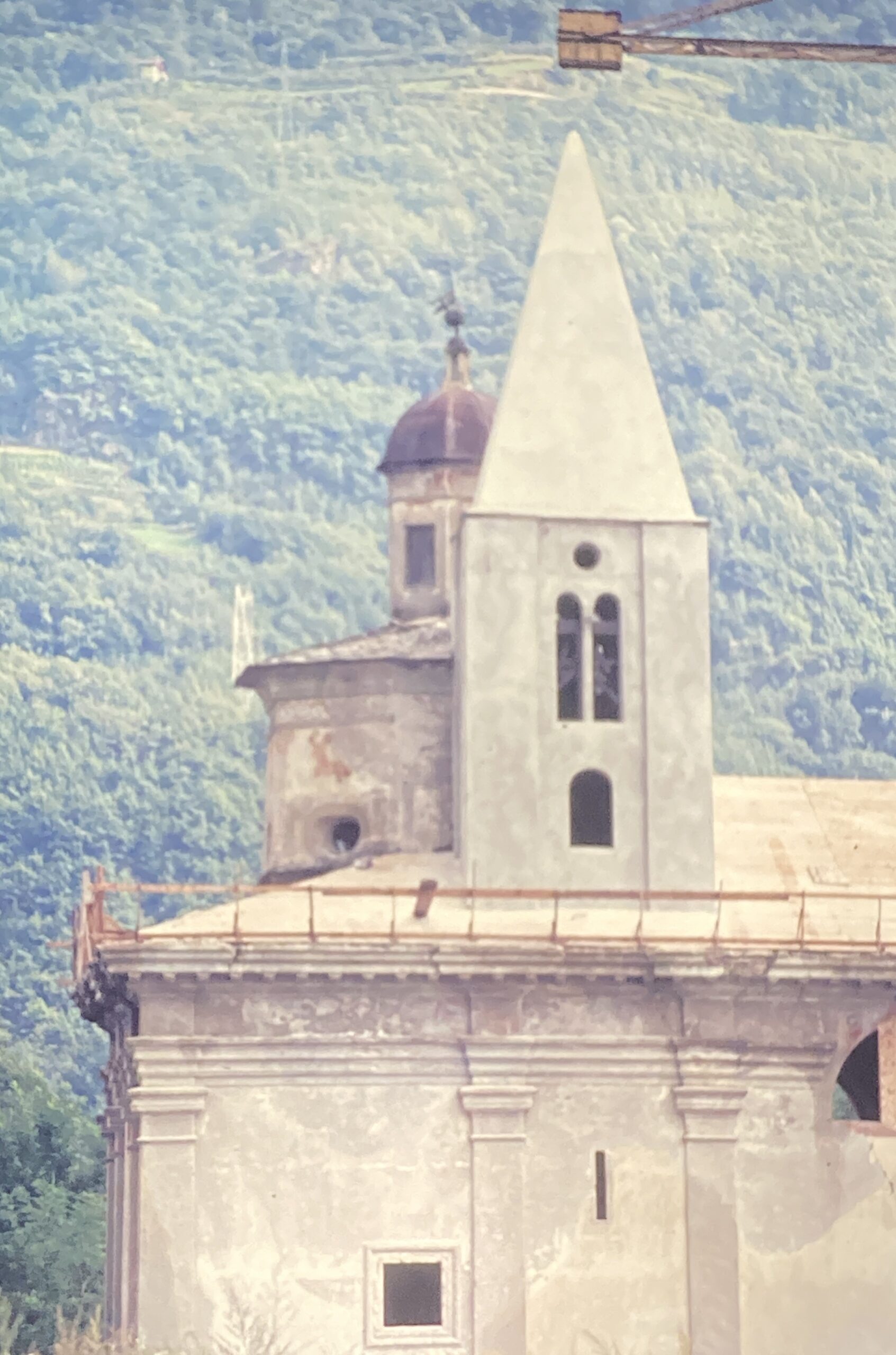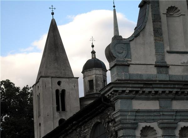 Per chi arriva da Sondrio, l’edificio mostra un’interessante combinazione: il tiburio ottagonale sormontato dal lanternino della cupola rinascimentale si accosta all’antico campanile medievale con una cuspide quadrangolare allungata, che preannuncia il gotico e si erge a nord del santuario.